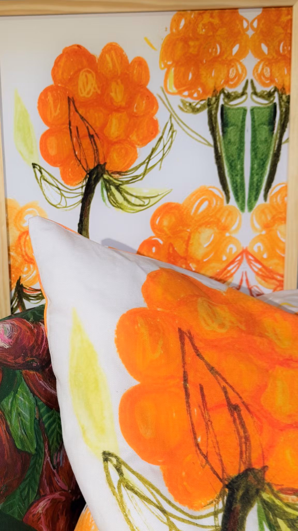 Hjortron (Rubus chamaemorus) eller mylta på jämtska, är en lågväxande, flerårig ört i hallonsläktet. Kanske är det en av de godaste bären vi har? Och otroligt vackra, så jag var tvungen att måla dem!