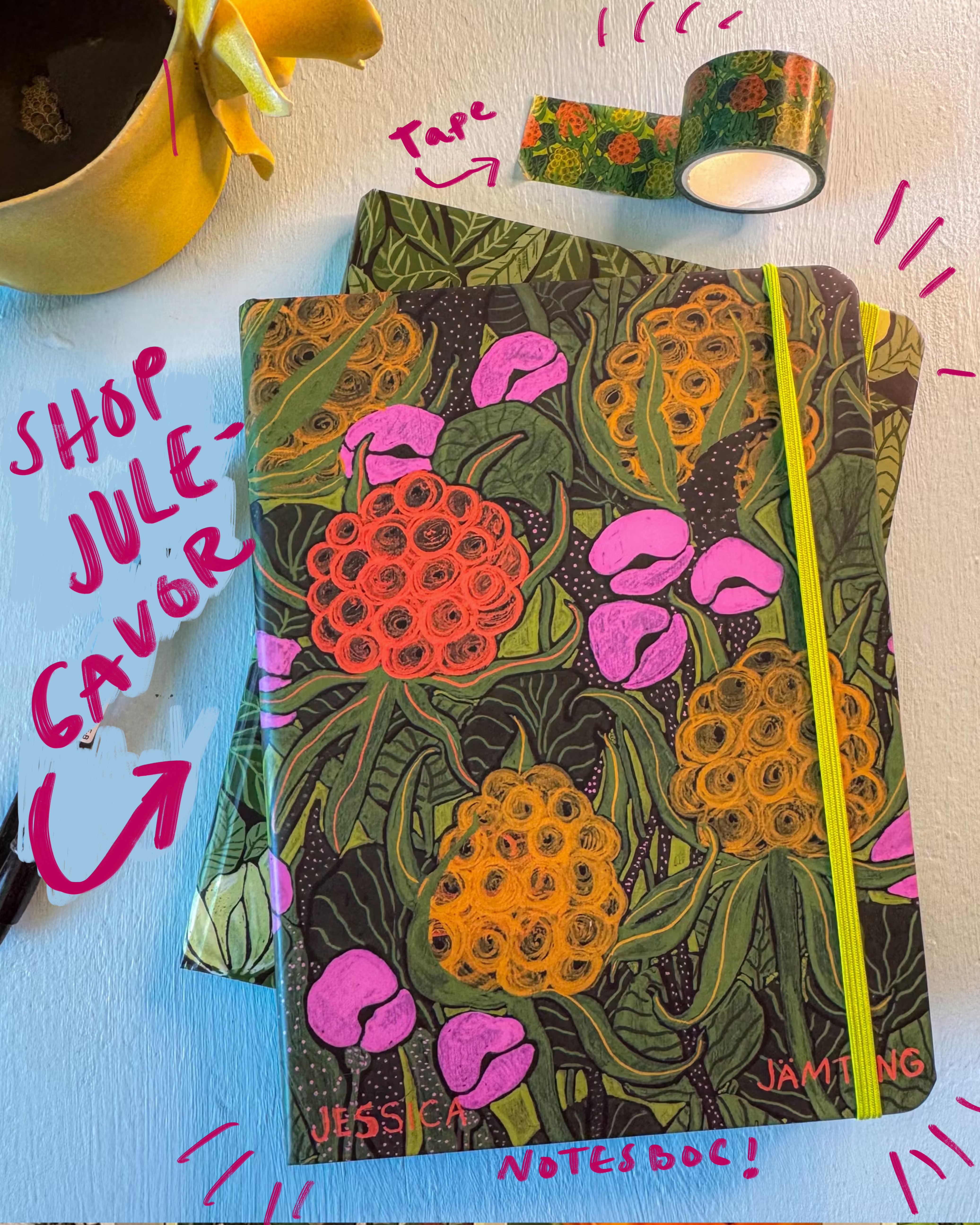 Jessica Jämting er en svensk kunstner og designer, som skaber farverig og stemningsfuld kunst inspireret af skandinavisk natur, impressionisme, dekorative mønstre og en generel glæde ved farver. Jeg arbejder i flere medier – akvarel, akryl og digitalt maleri – og mit mål er at sprede varme, glæde og skønhed gennem kunsten.På julemarkedet medbringer jeg et udvalg af mine mest populære plakater, notesbøger, julekort og designprodukter.